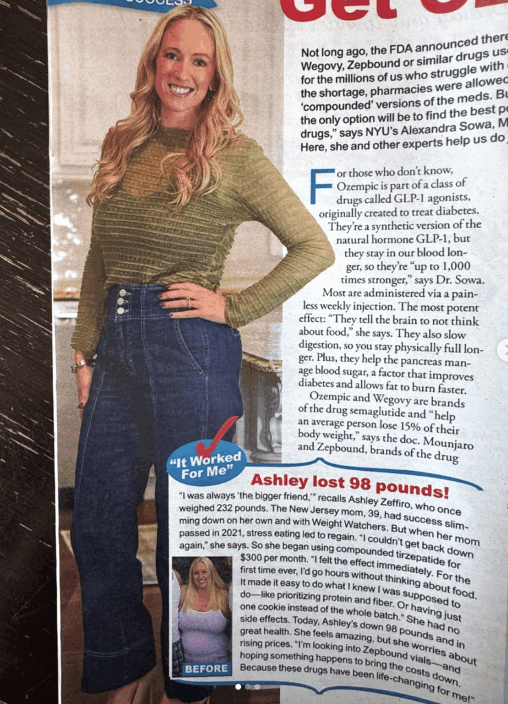 One of the coolest experience ever! Women’s World interviewed me for their magazine about my weight loss struggles and how a GLP-1 was the tool I finally needed to stop thinking about food.